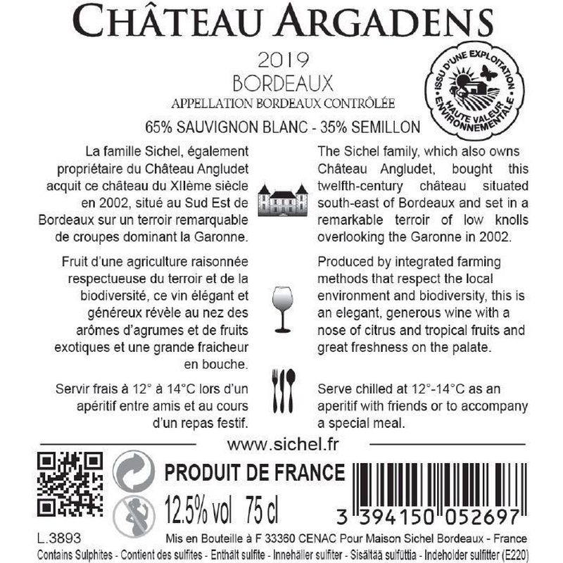 Châteaux Argadens, Bordeaux Châteaux Argadens Blanc 2022, 750 ml