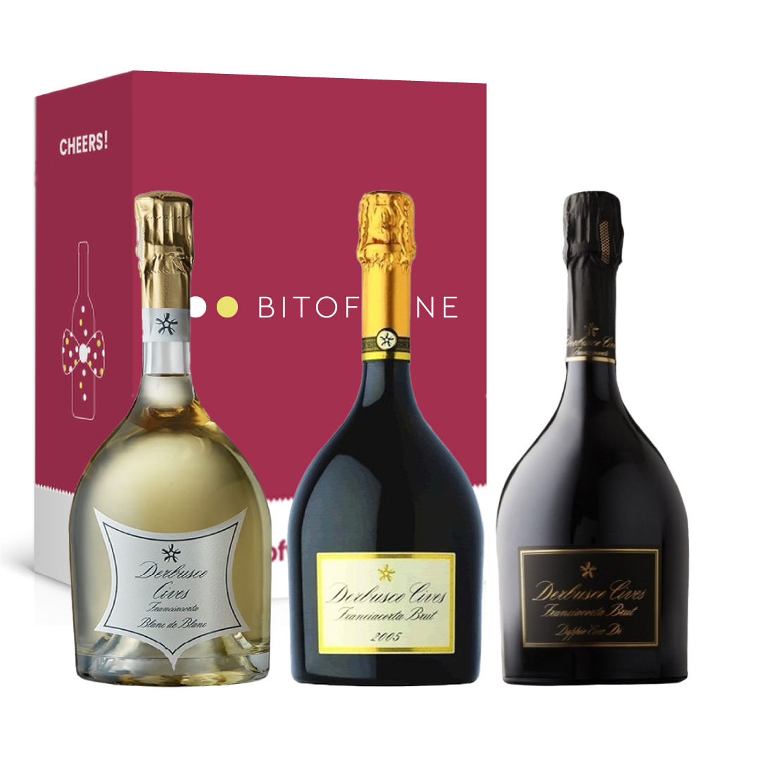 Questa selezione di Derbusco Cives include tre Franciacorta ideali per occasioni speciali: Doppio Erre Di Brut, Millesimato Brut 2015 e Blanc de Blanc Brut.