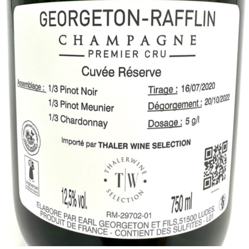 Georgeton-Rafflin Réserve 1er Cru è un’icona della Champagne. Con aromi di frutta a polpa bianca, agrumi e note di panetteria, questo Réserve rivela eleganza e complessità. In bocca è fresco e avvolgente, con una piacevole vena minerale che ne esalta la struttura. Perfetto come aperitivo o per accompagnare piatti di pesce, crostacei e sushi. Un omaggio alla tradizione e all’eccellenza della Champagne.