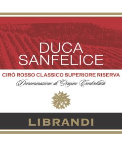 Il Cirò Rosso Classico Superiore Riserva Duca Sanfelice 2019 della Librandi è un vino rosso intenso e strutturato proveniente dalla Calabria. Con una tonalità rubino brillante, offre profumi complessi di frutti di bosco, spezie e note balsamiche. Al palato è corposo e avvolgente, con tannini morbidi e una lunga persistenza. Perfetto con piatti di carne, formaggi stagionati o piatti di pasta saporiti.