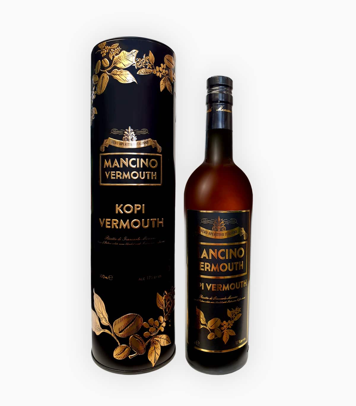 Mancino Kopi è un particolare vermouth ottenuto attraverso l’infusione in vino bianco di diverse erbe aromatiche e 14 chicchi di caffè Robusta selezionati a mano a Java e sottoposti a tostatura scura a Napoli da Barbera Caffè.