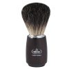 is an Omega shaving brush in pure badger effect bristle with satin plastic handle.