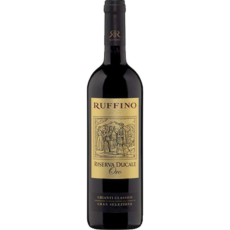 Il Chianti Classico Gran Selezione Riserva Ducale Oro di Ruffino nasce nei vigneti delle Tenute Ruffino di Gretole e Santedame, nella zona di produzione più prestigiosa del Chianti Classico, la Conca d’Oro. Nato nel 1947, per commemorare una grande vendemmia, questo vino viene prodotto solo nelle migliori annate, quando le uve soddisfano gli alti standard qualitativi dell’azienda.È prodotto in prevalenza con uve Sangiovese e con uve Cabernet Sauvignon e Merlot, raccolte e selezionate interamente a mano. La fermentazione avviene in vasche di acciaio inox alla temperatura controllata di 28°C per 10 giorni. Il vino affina per circa 36 mesi in vasche di cemento e acciaio, per 12 mesi in barrique di rovere e per ulteriori 6 mesi in bottiglia, prima della sua commercializzazione.È caratterizzato da un colore rosso rubino. Al naso si apre con un intrigante bouquet, in cui spiccano sentori di viole e prugne, arricchiti da piacevoli note speziate di cacao e cannella. Al palato risulta di grande struttura e ben bilanciato, con tannini delicati e un finale gradevolmente lungo e persistente.Perfetto per accompagnare carni rosse alla brace, è ideale in abbinamento a selvaggina e formaggi stagionati.