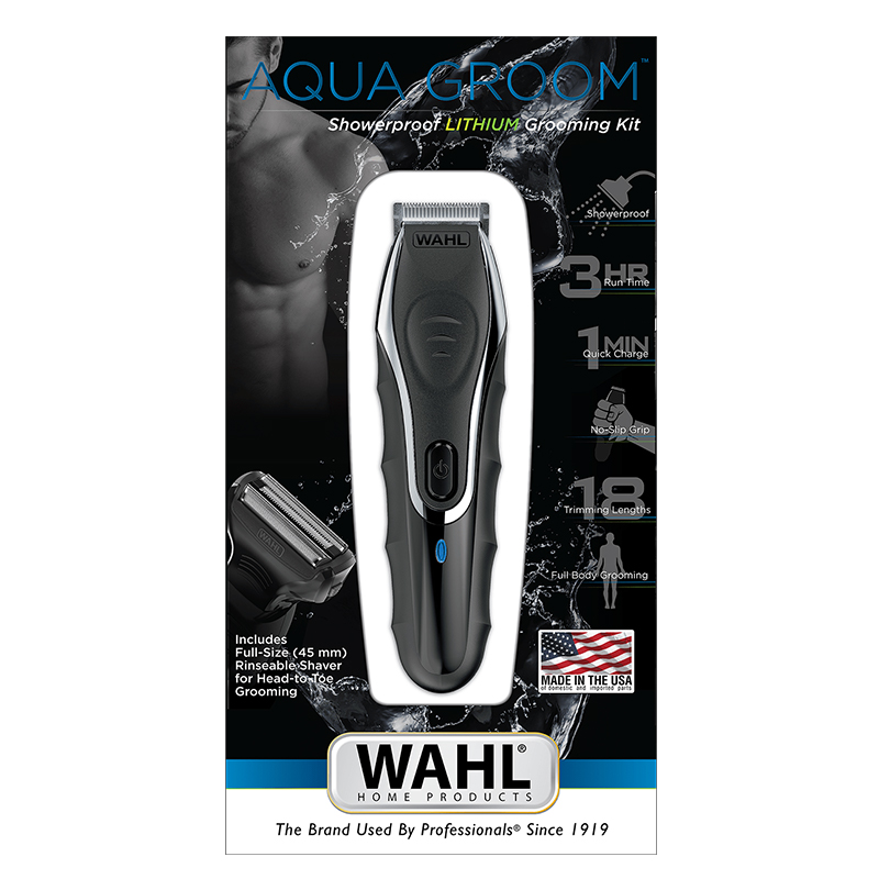 Tosatrice Wahl Aqua Groom è il primo regolabarba del tutto idoneo all’utilizzo sotto la doccia ad entrare nella nostra gamma di prodotti per una rasatura completa.